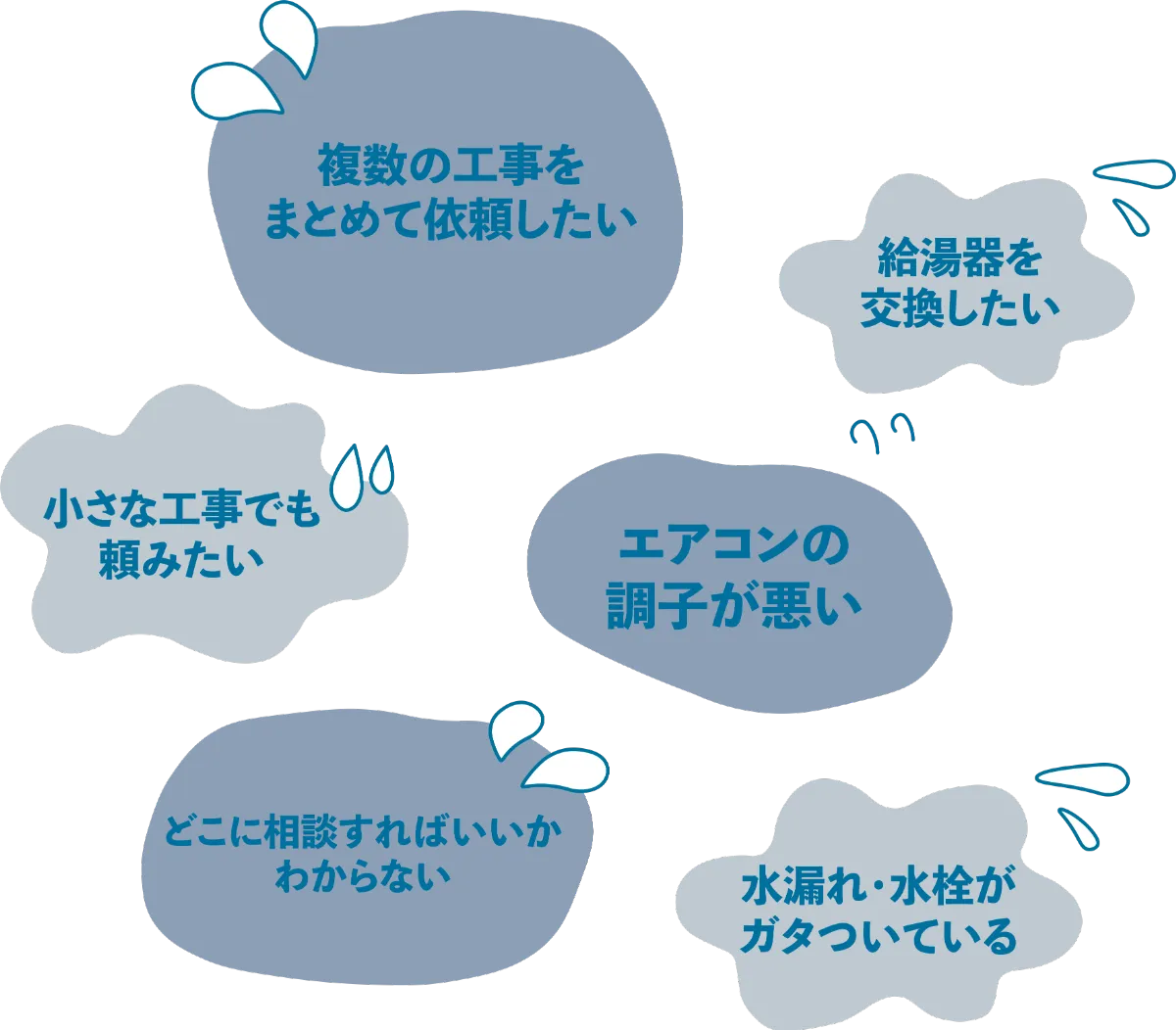お任せ対応エアコン・給湯器・電気・水道・リフォームまで、住まいのことをワンストップで対応します。